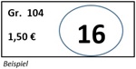 - folgende Info muss auf dem Etikett stehen: Kleidungsgröße, Verkaufspreis, Verkäufer-Nr. (siehe Beispiel)