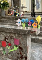 Hunderte Papierblumen in der Kirche – besonderer Osterschmuck in unseren Kirchen