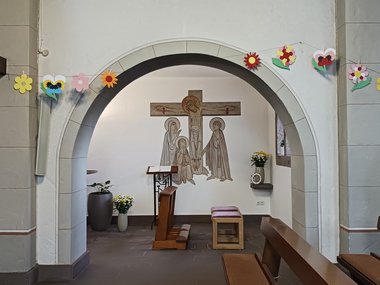 Wir, die Senioren der St. Christophorus Gemeinde sehen uns jeden Mittwoch um 15.00 Uhr zur Messe und griffen den Aufruf freudig auf und trafen uns zum Basteln der Blumen im Pfarrhaus.
