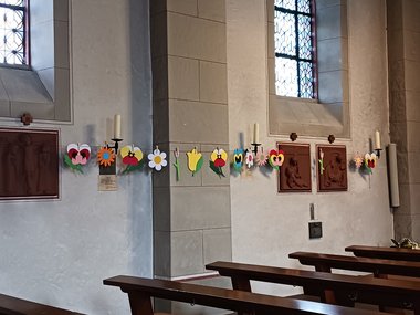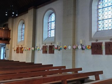 Am Karsamstag wurden die Kirche dann für die Auferstehungs-Feier schön dekoriert, um die Freude auszudrücken, dass Jesus von den Toten auferstanden ist, so wie Blumen aus der Erde nach einem langen Winter wieder bunt erscheinen.